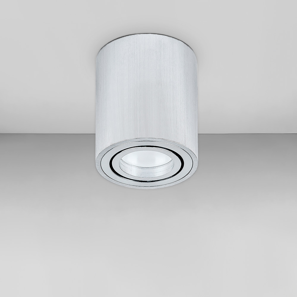 Точковий накладний світильник форми циліндра, живиться від мережі 220В, має механізм легкої заміни лампи. Ідеально підходить для низьких стель.