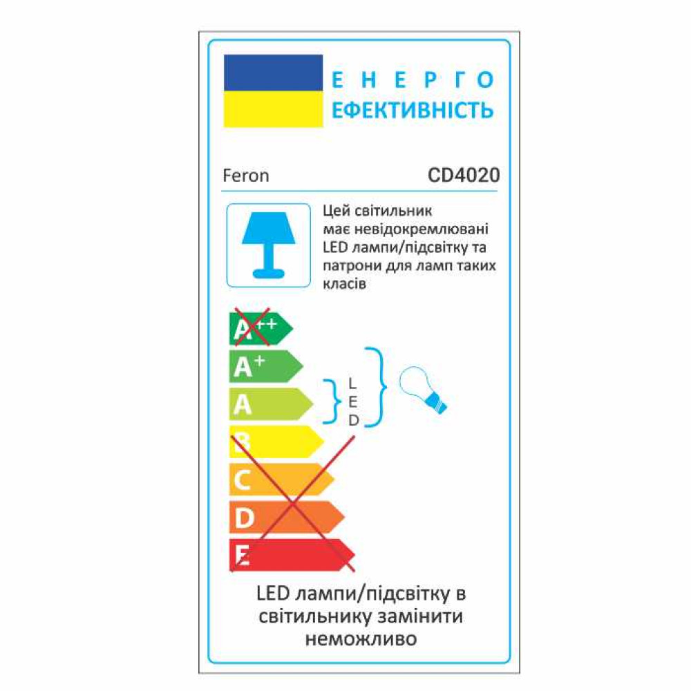 Світильник оснащений двома джерелами світла: цоколем GX53 під світлодіодну лампу типу GX53 та світлодіодним підсвічуванням по периметру світильника. Лампу та світлодіоди підсвічування можна підключати окремо та використовувати як різні типи освітлення. Світлодіоди світильника можуть працювати без увімкнення лампи. Рекомендується використовувати тільки зі світлодіодними лампами та дистанційними вимикачами Feron.
