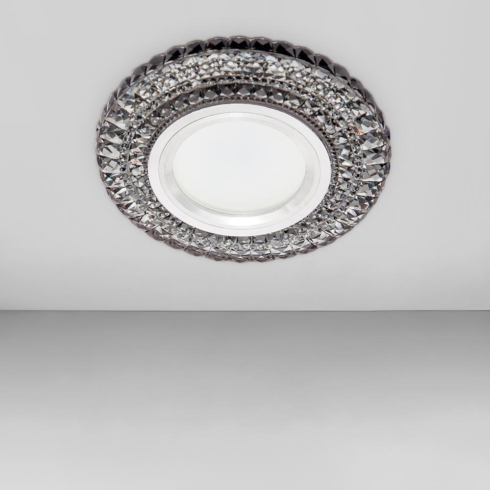 Точковий врізний декоративний світильник круглої форми, живиться від мережі 220В, має механізм легкої заміни лампи. Ідеально підходить для низьких стель.