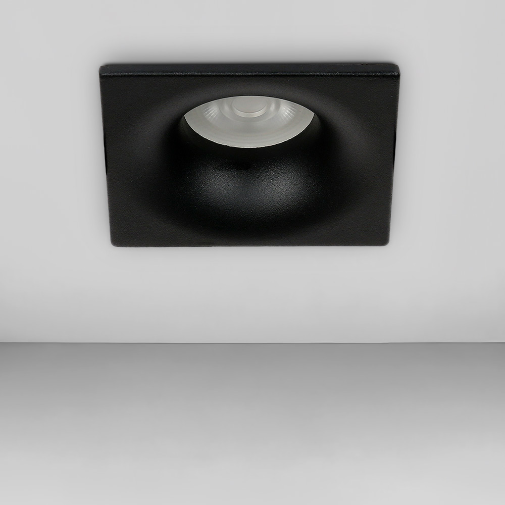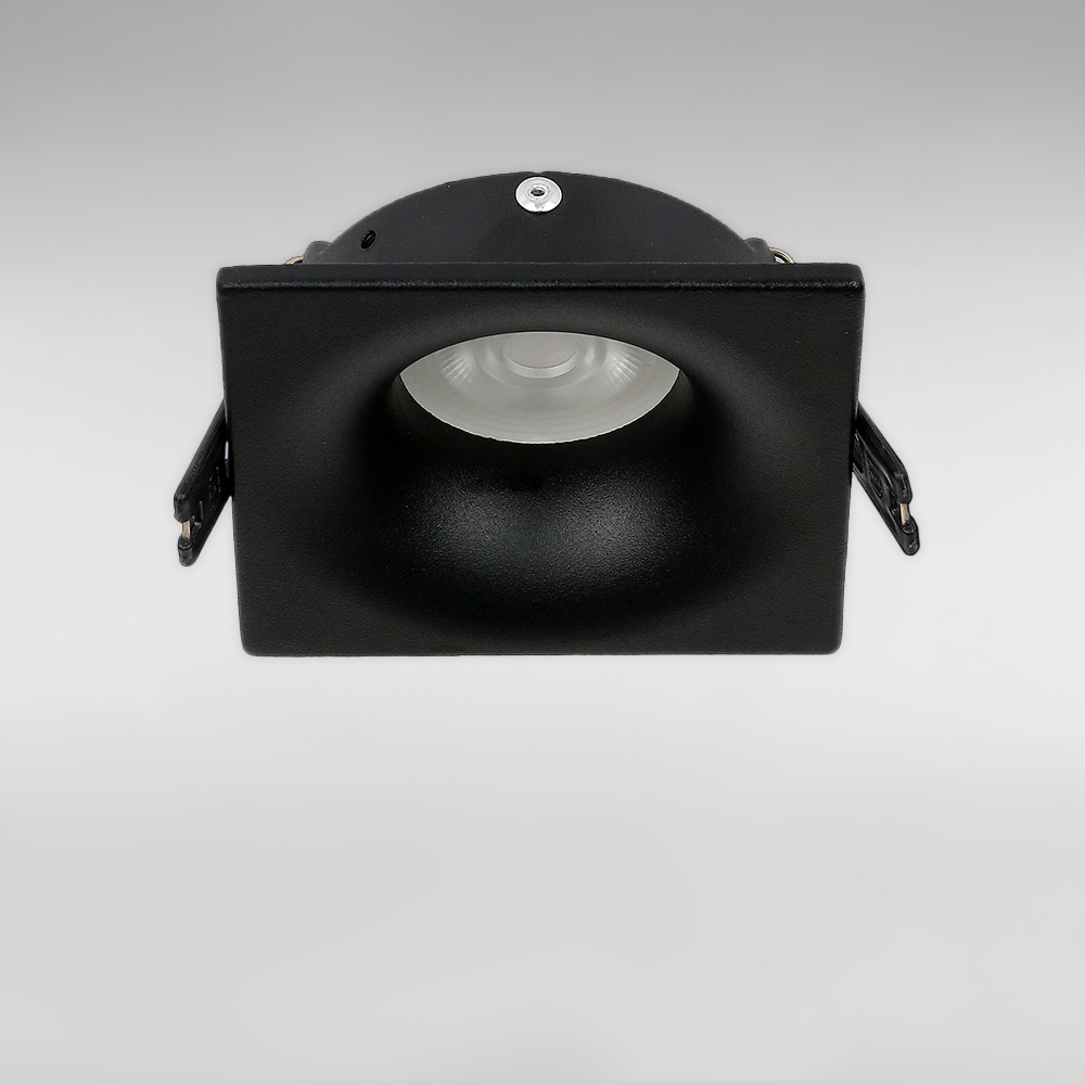 Точковий врізний світильник квадратної форми, живиться від мережі 220В, має механізм легкої заміни лампи. Ідеально підходить для низьких стель.