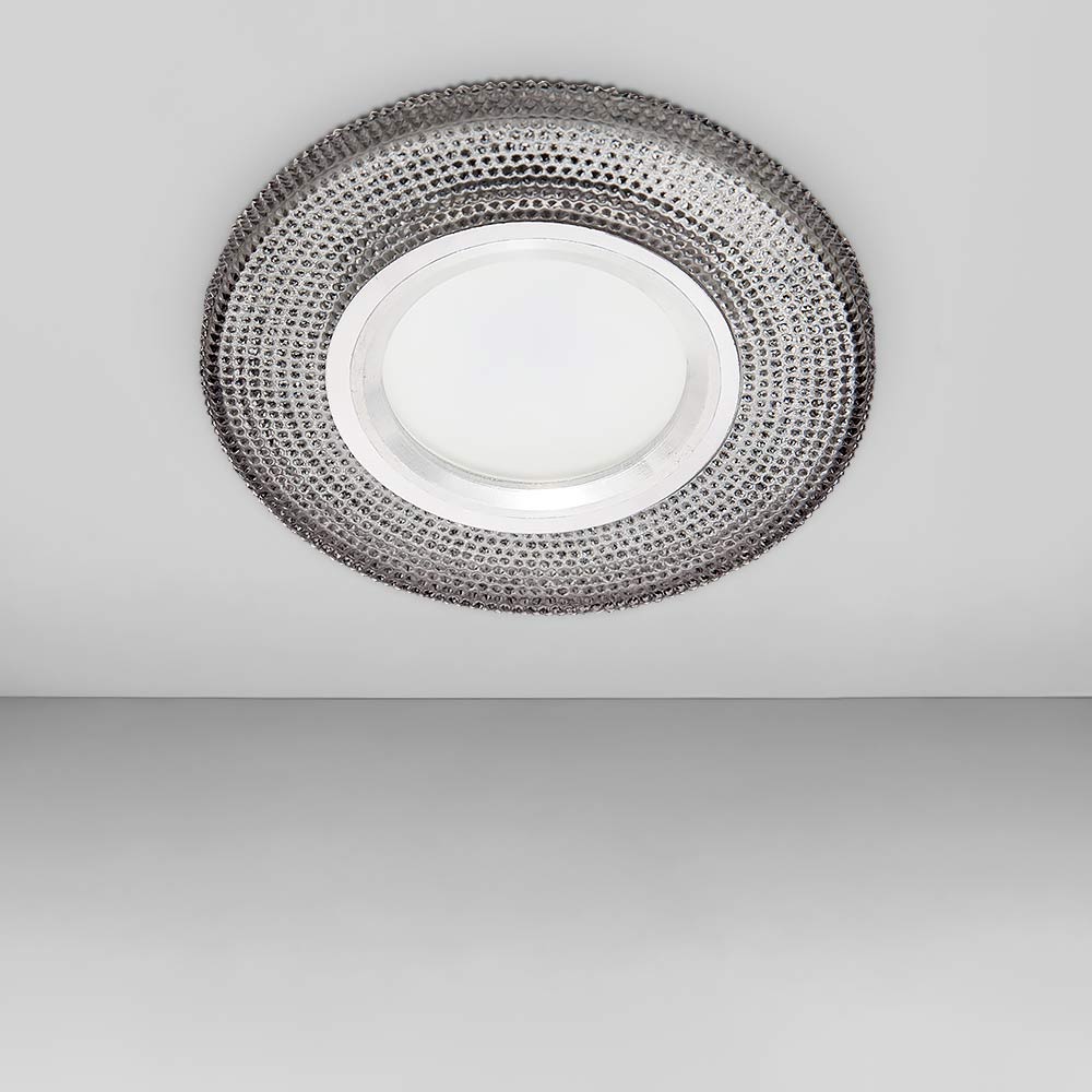 Точковий врізний декоративний світильник круглої форми, живиться від мережі 220В, має механізм легкої заміни лампи. Ідеально підходить для низьких стель.