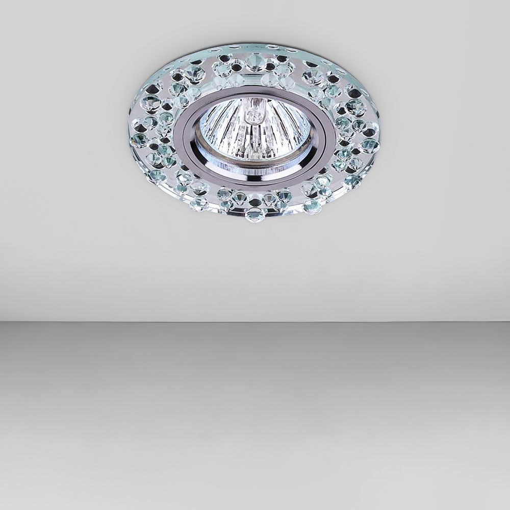 Точковий врізний декоративний світильник круглої форми, живиться від мережі 220В, має механізм легкої заміни лампи. Ідеально підходить для низьких стель.