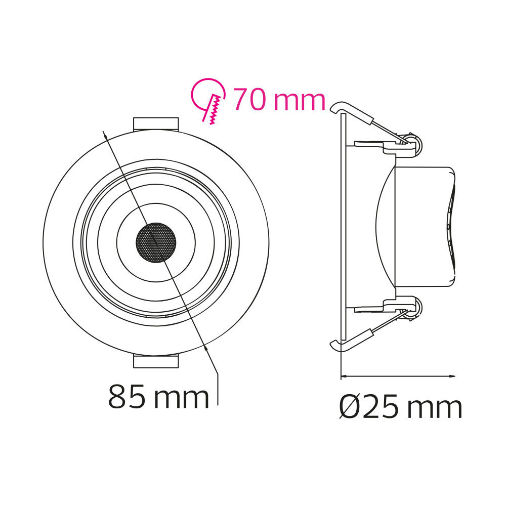 Врізний отвір: 68 мм;