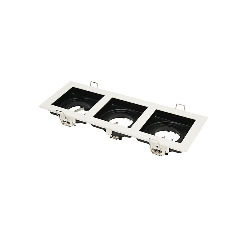 Стельовий врізний точковий світильник прямокутної форми на три лампи MR-16 із поворотним механізмом.