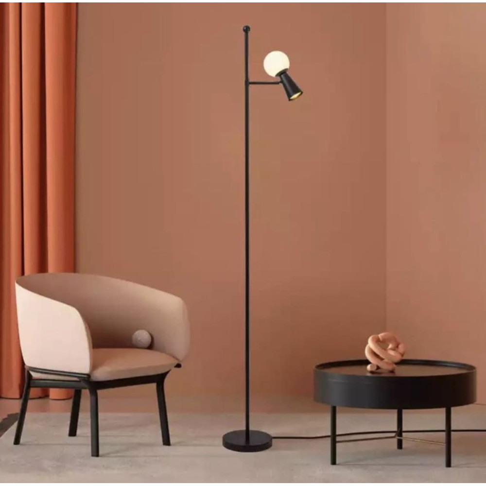 Немає відгуків про товар Чорний торшер ABELINA з білим плафоном на два джерела світла