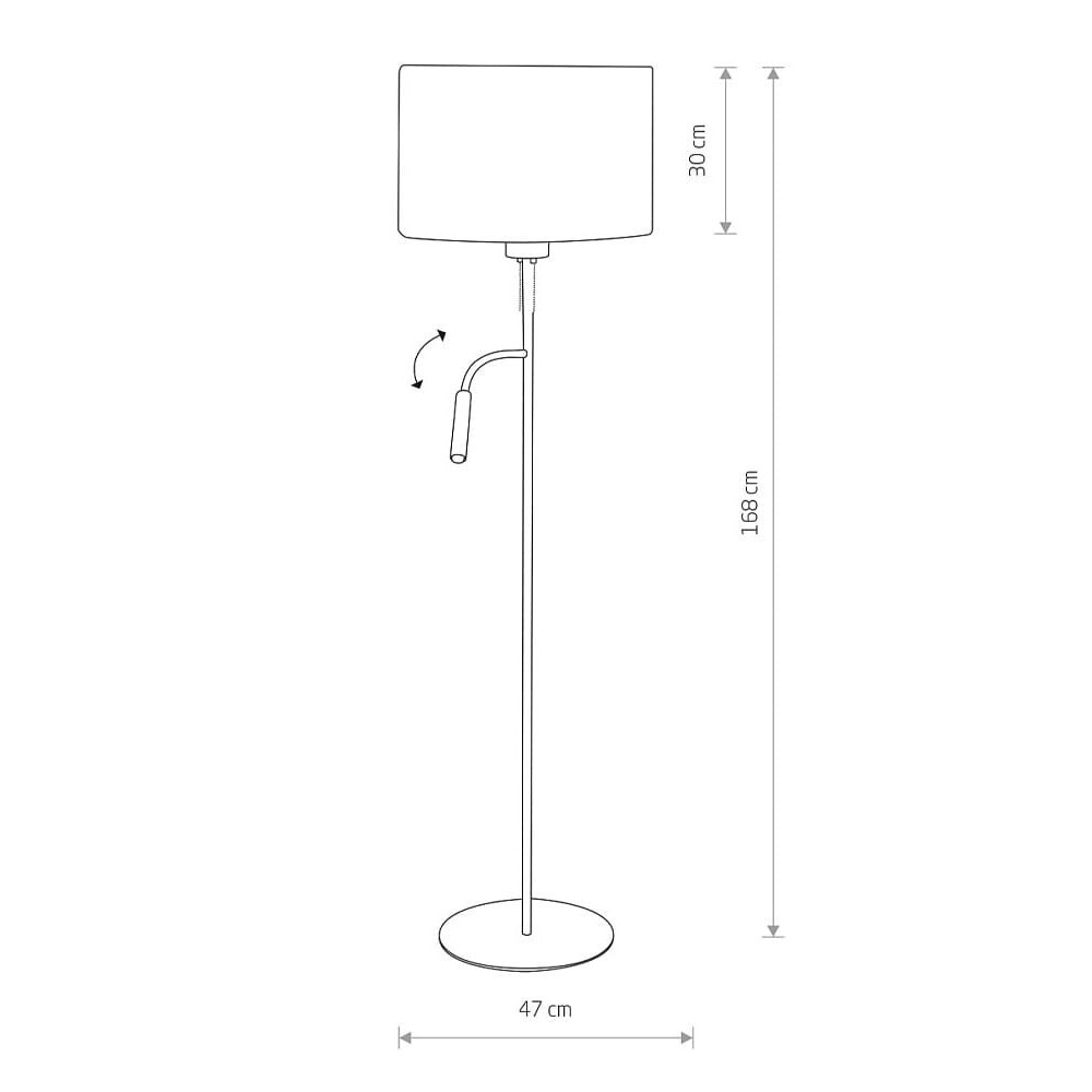 Висота торшера складає 1680 мм, довжина – 470 мм, ширина – 470 мм. При виборі враховуйте площу кімнати та функцію, яку світильник повинен виконувати: декоративну чи практичну.
