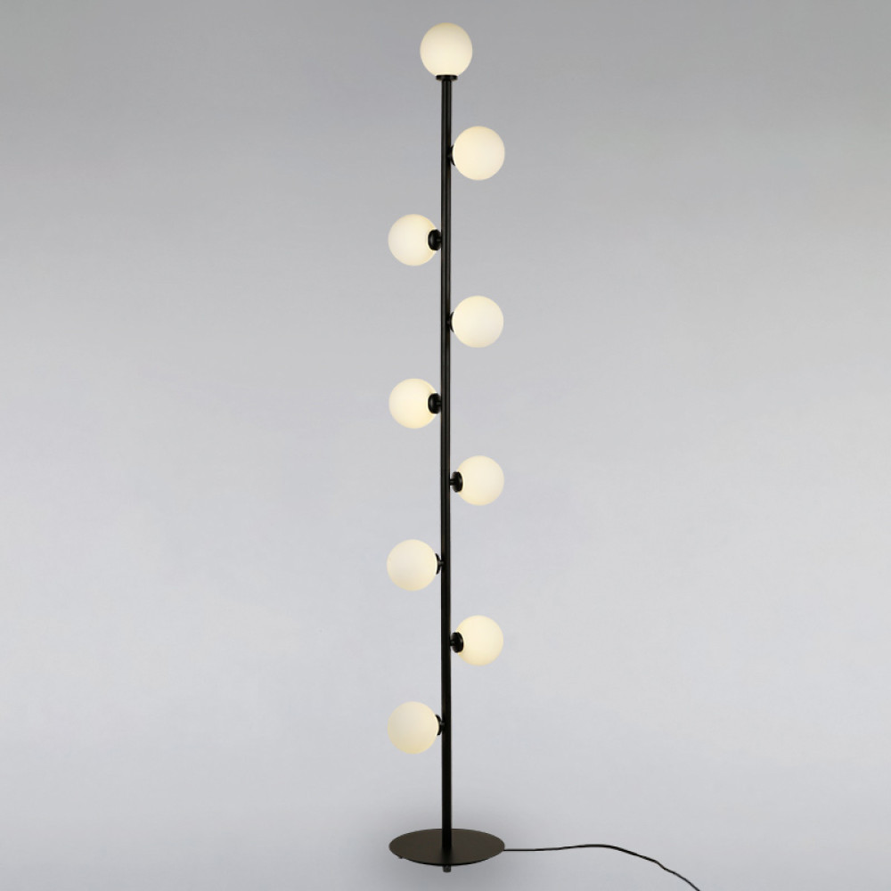 Торшер у стилі модерн із чорного металу та білого скла на дев'ять ламп з цоколем G4, можна купити у нашому магазині. Світильник для підлоги пропонує легке у використанні рішення для освітлення будь-якого простору, навіть якщо у вас мало місця. Його легко переміщати, так що ви можете зробити будь-який простір трохи більш затишним.
