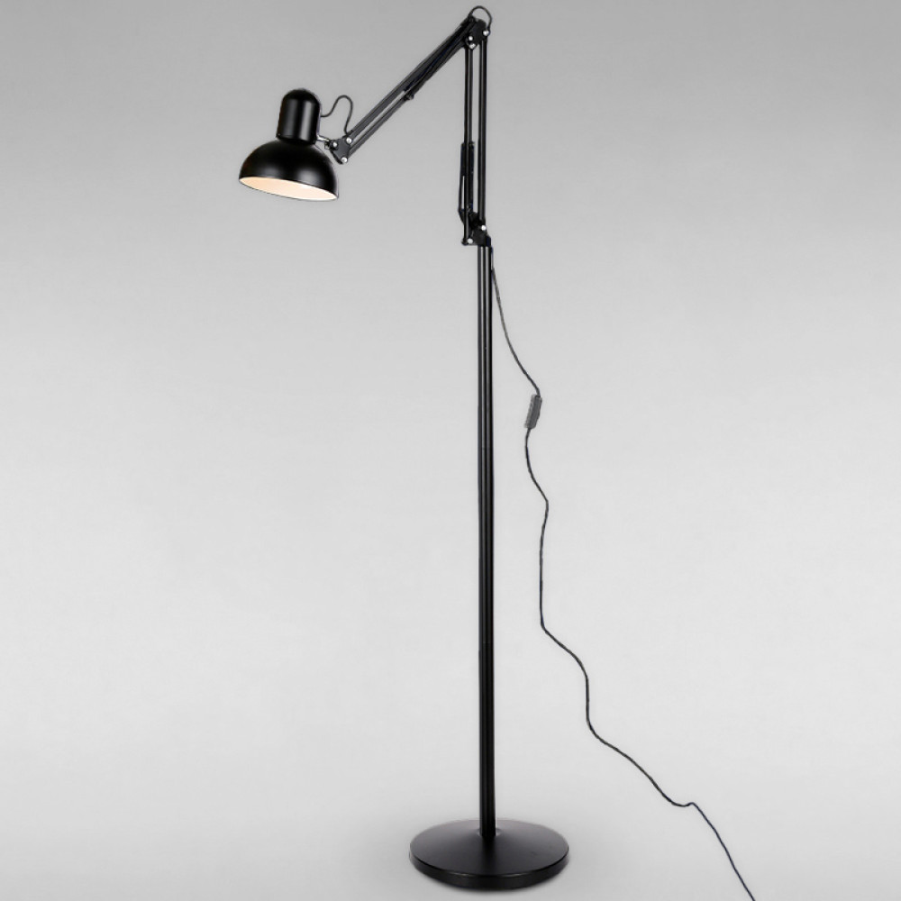 Чорний торшер в стилі лофт з металу на одну лампу з регулюванням напряму світла, можна купити в нашому магазині.