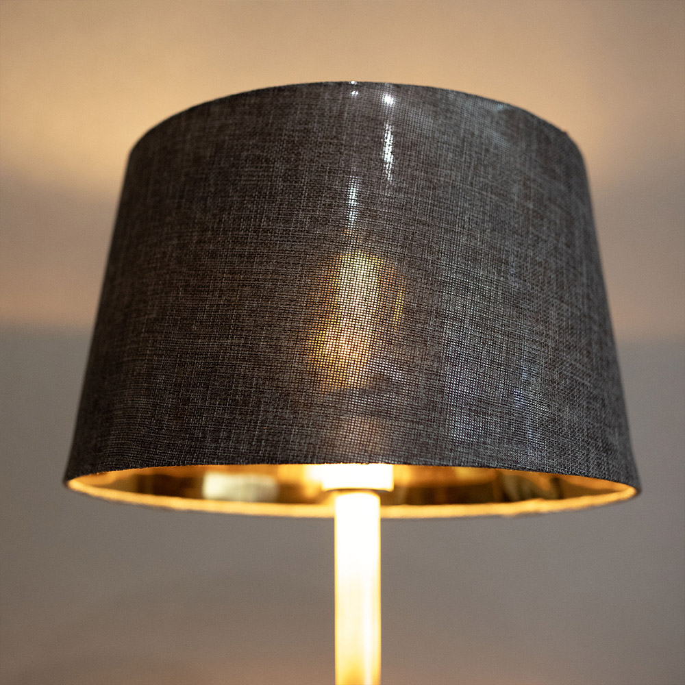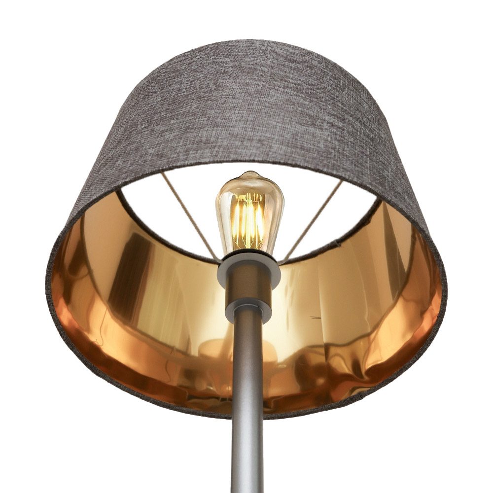 Плавні лінії, рівний силует і повністю сіре виконання надають виробу строгість та витонченість одночасно. Тканинний абажур ніжного сірого кольору пом'якшує світло, створюючи затишну атмосферу у вечірній час. Підходить під стандартні лампи з цоколем E27 – ви можете використовувати лампу з потрібною яскравістю та температурою світла. Матова сіра основа та стійка виконані з міцного металу та забезпечують стійкість та довговічність конструкції.