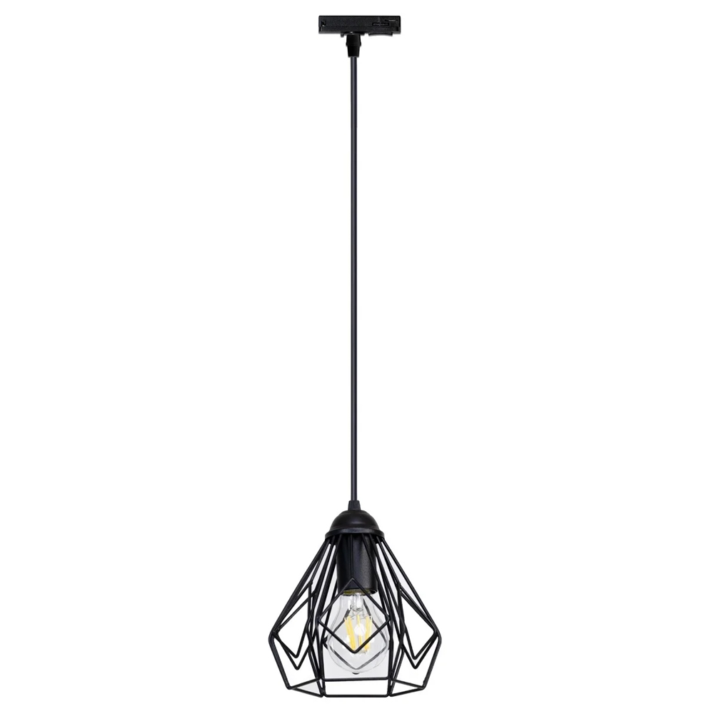 Сучасний підвісний трековий світильник (підвісна люстра) в стилі лофт на одну лампу з металевим плафоном у вигляді багатогранника.