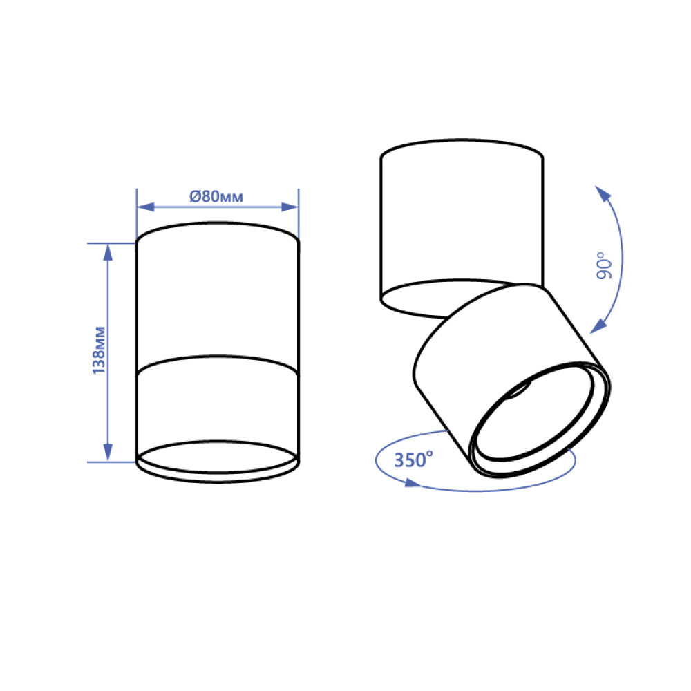 Розміри світильника, мм: 80х138;