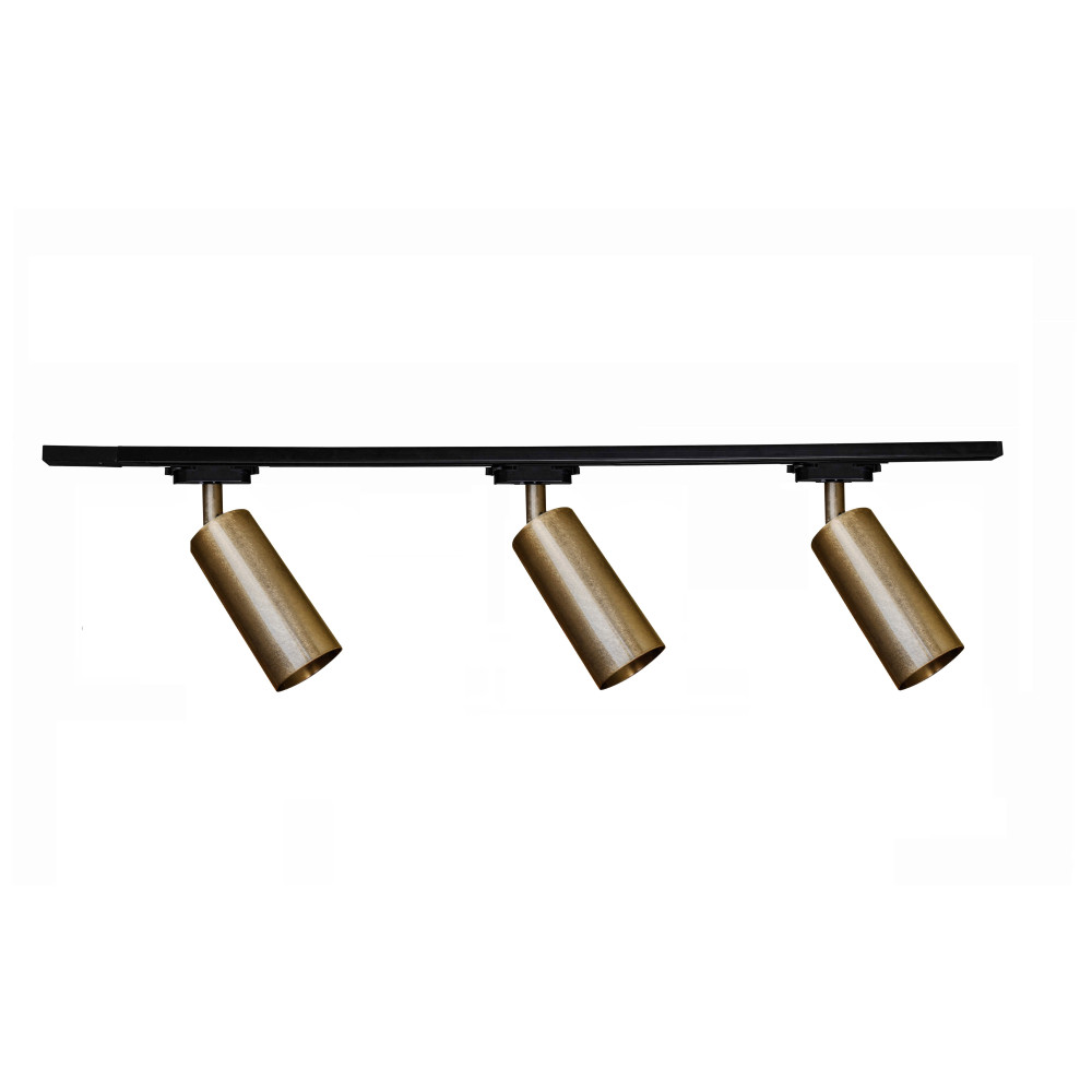 Трековий світильник у стилі лофт є 3 плафонами циліндричної форми з патроном під лампу Е27 і кріпленням на рейку (шинопровід).