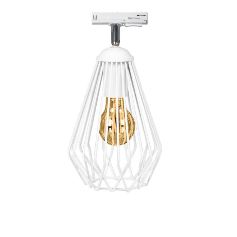 Сучасні стельові трекові світильники в стилі Лофт на одну лампу з металевим плафоном у вигляді клітини конусної форми.Ця модель світильника відноситься до категорії трекових. Цей новий тип освітлювальних приладів набирає популярності як в офісних, так і в домашніх інтер'єрах.
