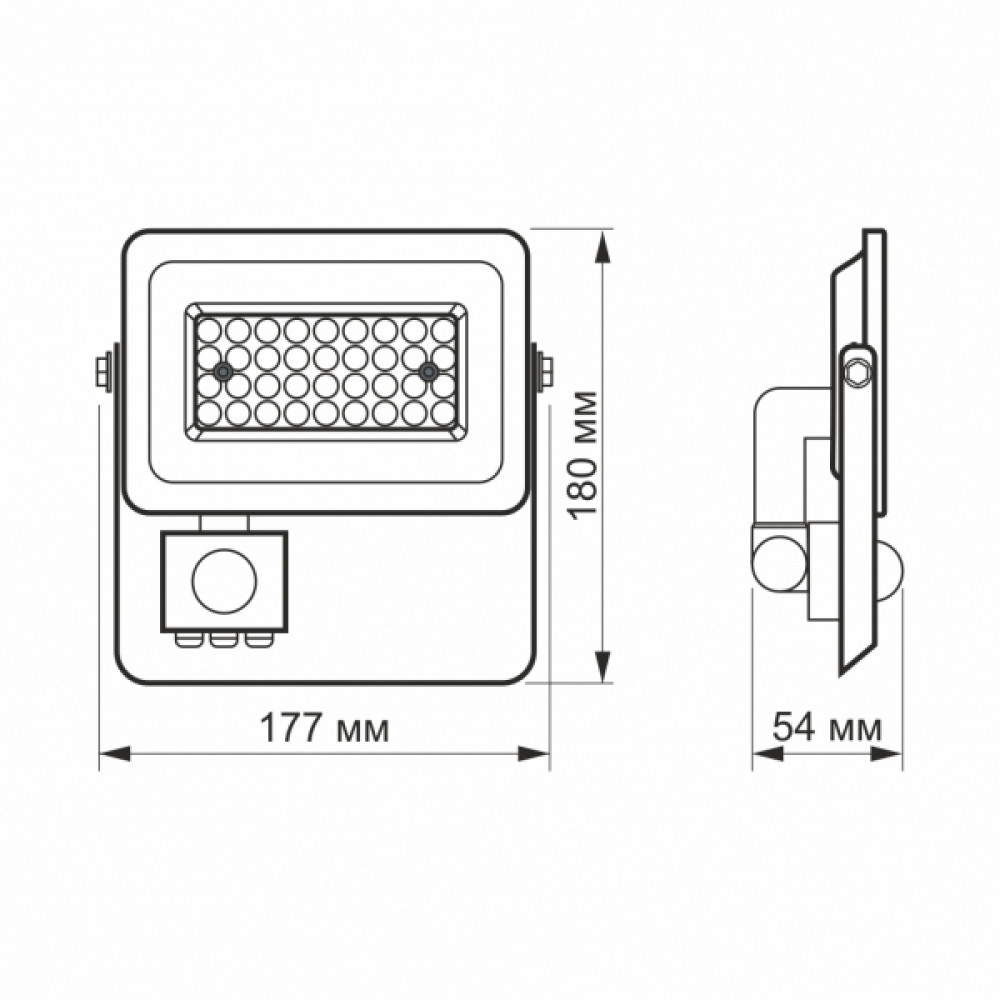 LED прожектор VIDEX 30W 5000K з датчиком руху та освітленості - високотехнологічне джерело світла. Забезпечує рівний світловий потік та максимальну потужність з першої секунди роботи. Світлодіодний прожектор Videx - екологічна та економічна заміна ламп розжарювання та люмінесцентних ламп. Цей прожектор можна використовувати для освітлення та підсвічування рекламних вивісок, конструкцій, автостоянок, гаражів, зовнішнього підсвічування будівель та споруд, спортивних майданчиків, стадіонів, промислових об'єктів, створення світлових ефектів. Його розміри становлять лише 177x180x54мм.