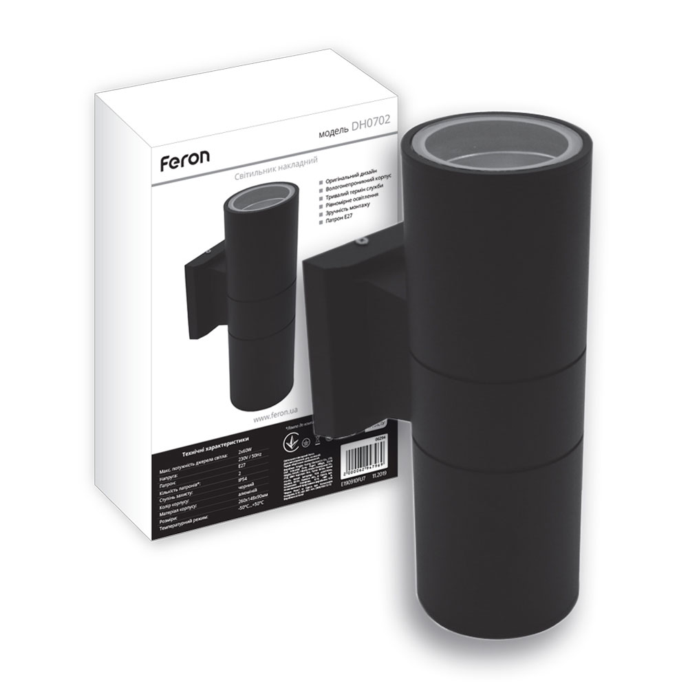 Немає відгуків про товар Світильник настінний фасадний Feron DH0702 чорний