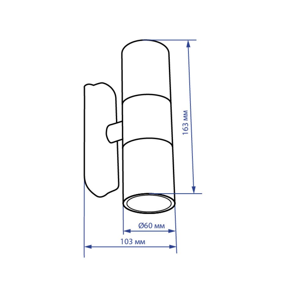 Довжина світильника – 103 мм;
