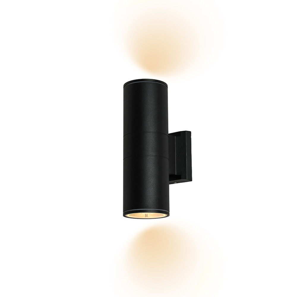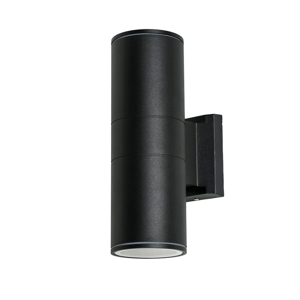 Вуличний настінний світильник Бра на дві лампи має корпус форми циліндра.