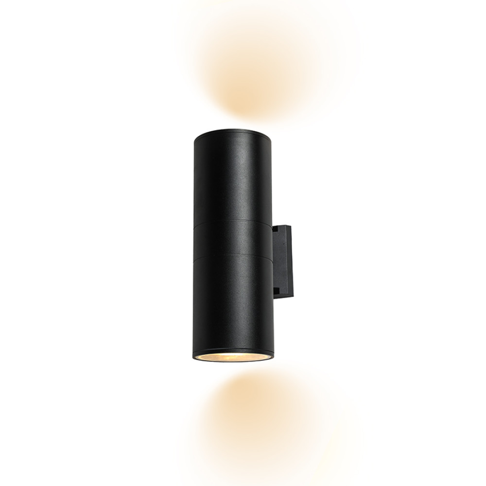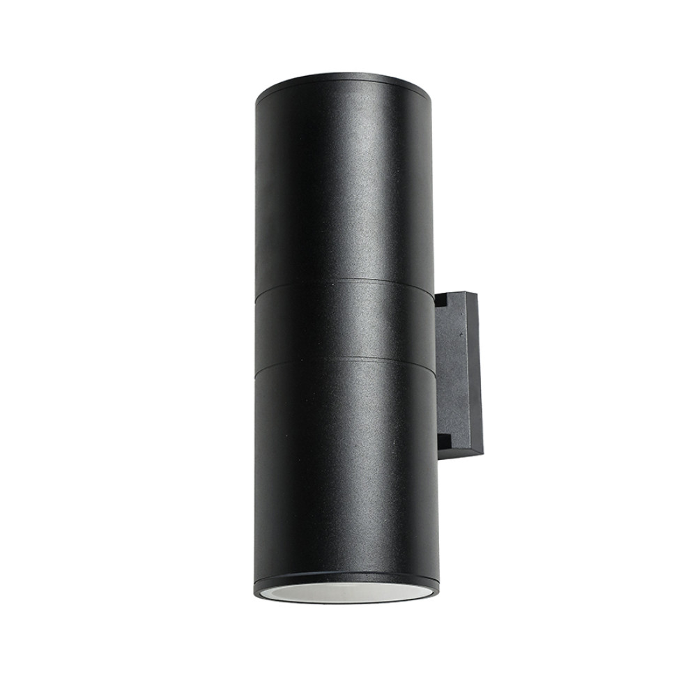Вуличний настінний світильник Бра на дві лампи має корпус форми циліндра.