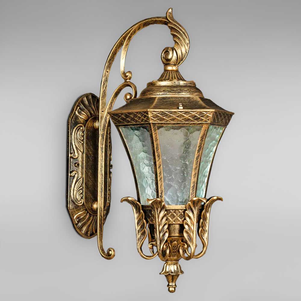 Цей металевий настінний садово-парковий світильник призначений для зовнішнього (фасадного) або інтер'єрного освітлення, виконаний у класичному стилі в бронзовому кольорі з декоративною імітацією під старовину скляним рифленим плафоном. Фасадний світильник на стіну, виготовлений з матеріалів високої якості, забезпечить надійне освітлення там, де це необхідно і стільки, скільки потрібно!