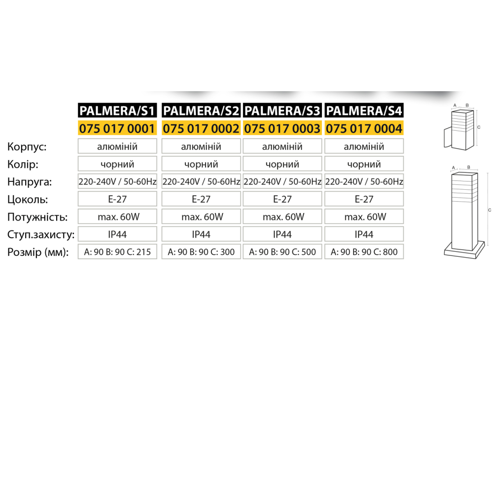 Світильник садово-парковий стовпчик HOROZ ELECTRIC "PALMERA/S3" Е27 стовпчик