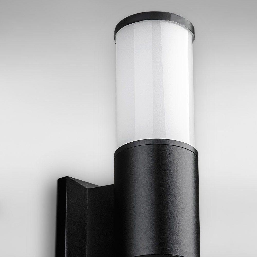 Вуличний настінний світильник на одну лампу з плафоном циліндричної форми.