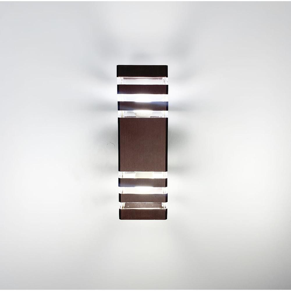 Вуличний настінний світильник на 2 лампочки в металевому корпусі коричневого кольору