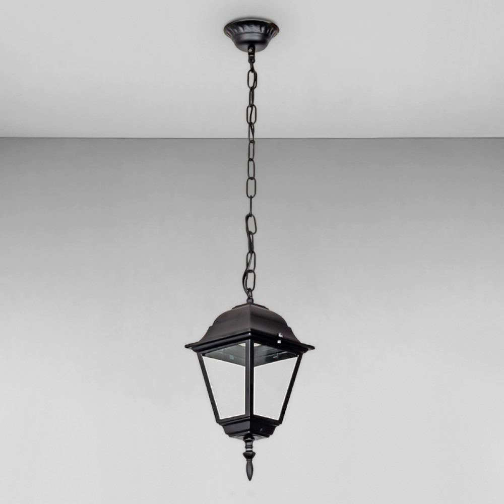 Вуличний підвісний світильник в класичному стилі на одну лампу з плафоном у вигляді старовинного ліхтаря.