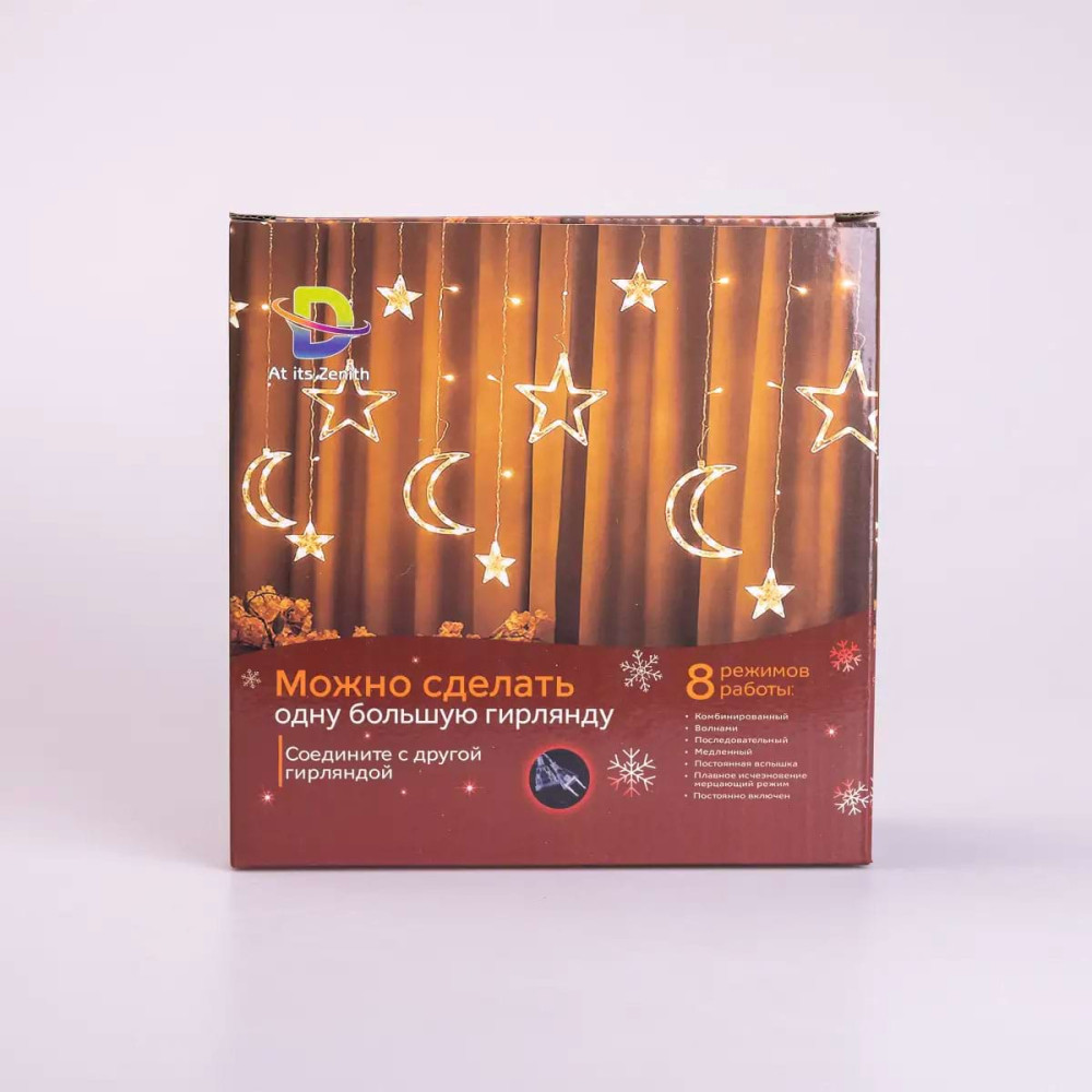 Гирлянда на окно со звездами создает уютную атмосферу, делая любое мероприятие уникальным. Светодиодная гирлянда звезды идеально подходит для окон, дверей, стен и фотозон. Множество светодиодов гирлянды в сочетании со звездами непременно создадут удивительный сказочный эффект, делая ваше событие по-настоящему особенным. Особенности гирлянды со звездами Гирлянда имеет простую и удобную конструкцию, которая позволяет легко установить ее в любом месте. Изысканная форма звезд шторы делает ее идеальным выбором для украшения окон, стен, арок или балконов. Гирлянда включает в себя 6 больших и 6 маленьких звезд, создавая великолепное световое шоу среди ночного неба в вашем интерьере. Используя современные LED-технологии, гирлянда эффективно расходует энергию, обеспечивая яркий свет и длительный срок службы. Вы можете наслаждаться светом этой гирлянды во многих праздничных сезонах. Вы можете объединить несколько гирлянд в одну, чтобы создать еще более впечатляющий световой декор на вашем мероприятии, либо охватить большую площадь. Цветовая палитра и простая установка гирлянды делают ее идеальным выбором для создания особой атмосферы. Наслаждайтесь волшебством света вместе с этой уникальной гирляндой. У гирлянды восемь различных режимов работы, позволяя вам выбирать и настраивать их в соответствии с вашим настроением и атмосферой: комбинированный; волнообразный; плавное угасание; медленный; постоянная вспышка; мерцающий; последовательный; постоянное свечение. Вы сможете подобрать подходящий режим для любого случая. Купить гирлянду звезды на окно можно с доставкой по всей Украине. Гирлянда подлежит возврату только в том случае, когда ее исправность проверена на почте. Во всех остальных случаях данный товар возврату не подлежит.